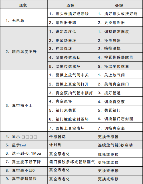 DZ系列電熱真空干燥箱--常見故障